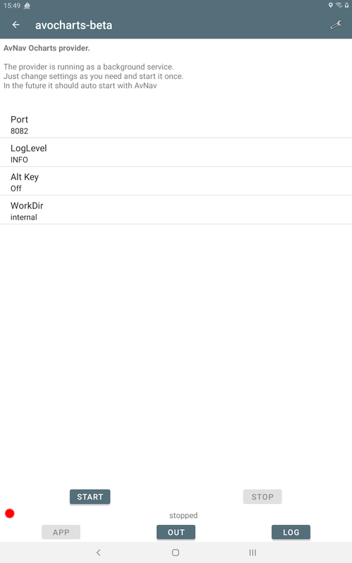 AvOcharts will store all charts, logs and the settings you can configure in Main Settings and Detailled Settings in a storage location on your device (Working Directory). This directory is independent from AvNav's working directory.